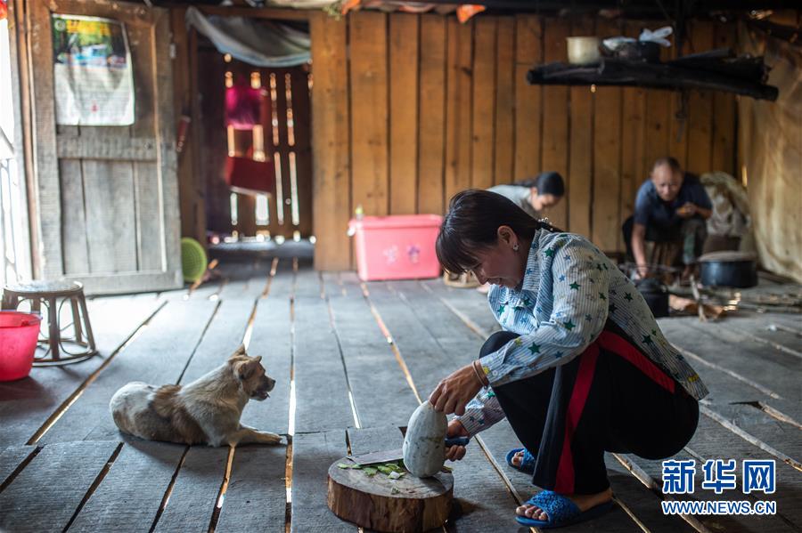 4月12日,在云南省勐海县布朗山乡曼囡村曼班三队,娜四在家切菜。新华社记者胡超摄
