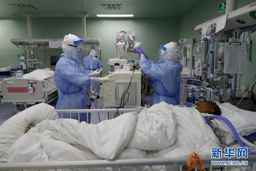 4月24日,在位于武汉的华中科技大学同济医学院附属协和医院西院,医务人员在护理核酸检测结果转阴的新冠肺炎病人。新华社记者沈伯韩摄