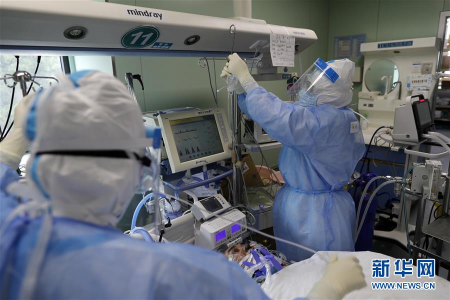 4月24日,在位于武汉的华中科技大学同济医学院附属协和医院西院,医务人员何珏(右)在护理核酸检测结果转阴的新冠肺炎病人。新华社记者沈伯韩摄