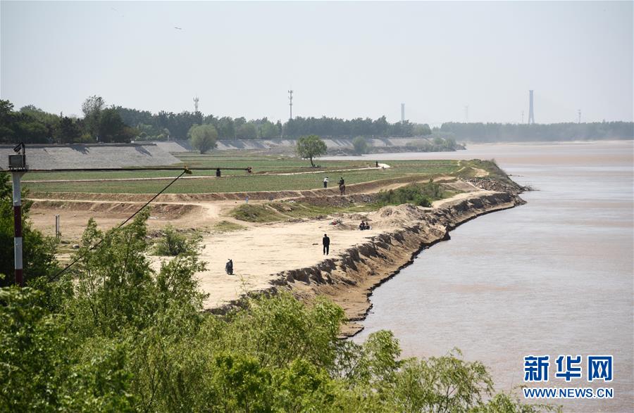 4月24日在山东济南拍摄的黄河景色。春暖花开的时节,济南黄河两岸春风送绿,大河、绿植与城市构成了一幅春的画卷。新华社记者王凯摄
