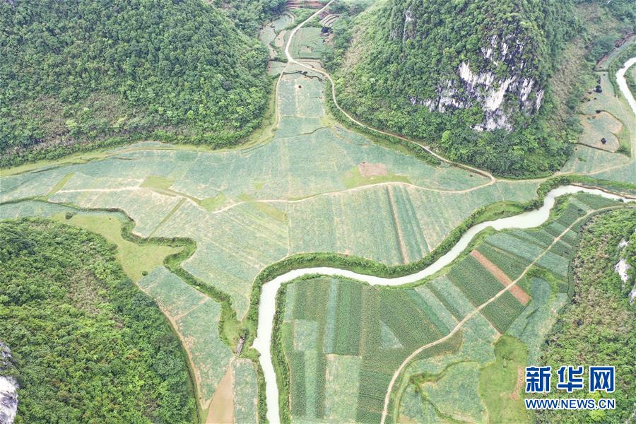 图为广西隆安县南圩镇田园景色(4月23日摄,无人机照片)。