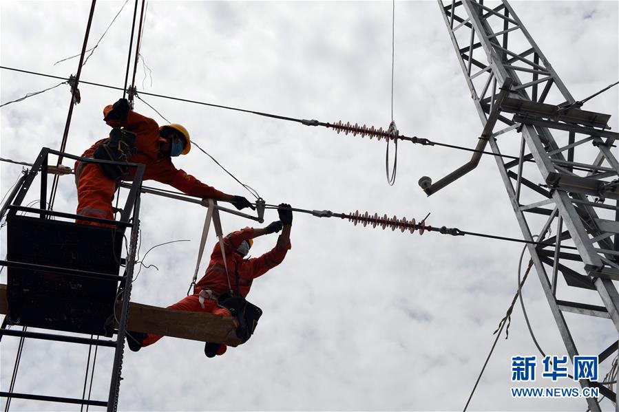 4月25日,在福建省宁德市屏南车站,施工人员开展接触网调整作业。中铁电气化局集团上海公司推动衢宁铁路福建段通信工程、信号工程、电力工程、电气化工程各环节协同复工复产,目前来自河北、河南、四川等国内10个省的900多名员工返岗就业。衢宁铁路北起浙江省衢州市,南至福建省宁德市,全长379.2公里。新华社记者彭张青摄