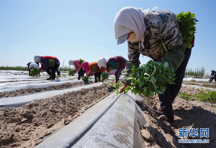 4月25日,滦南县东黄坨镇新户村农民在田间栽植烟薯秧苗。近年来,河北省滦南县利用当地土壤和气候特点,引导农民因地制宜发展烟薯种植,取得良好效果。目前该县烟薯种植面积达3万多亩,每亩年收入达5000多元。新华社记者杨世尧摄