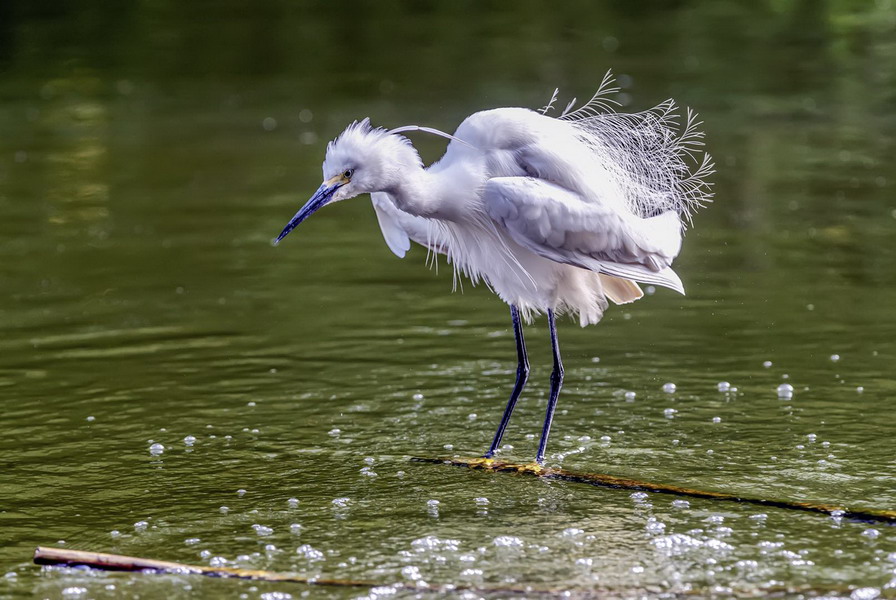 4月15日,摄于南山区华侨城天鹅堡附近。这是深圳拍鹭鸟的其中一个好去处。一只白鹭站在水面上。徐捷摄