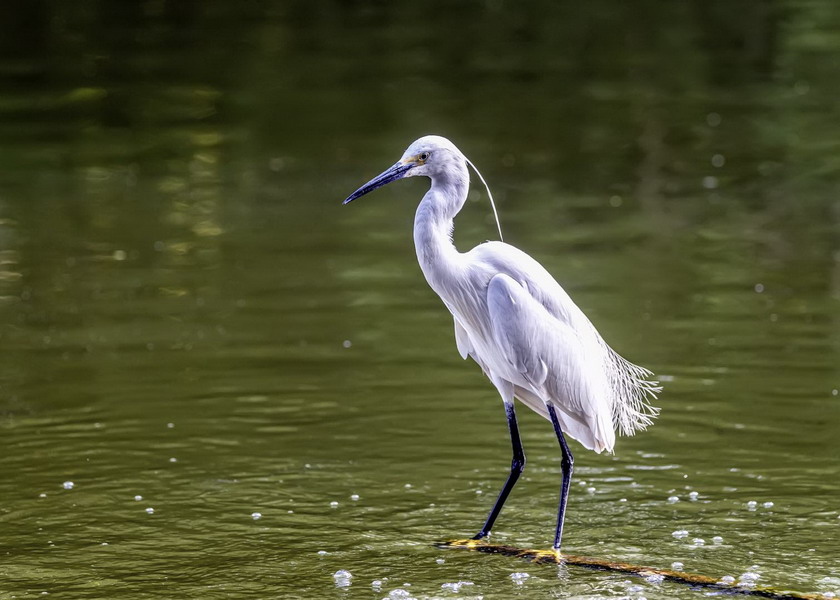 4月15日,摄于南山区华侨城天鹅堡附近。这是深圳拍鹭鸟的其中一个好去处。一只白鹭站在水面上。徐捷