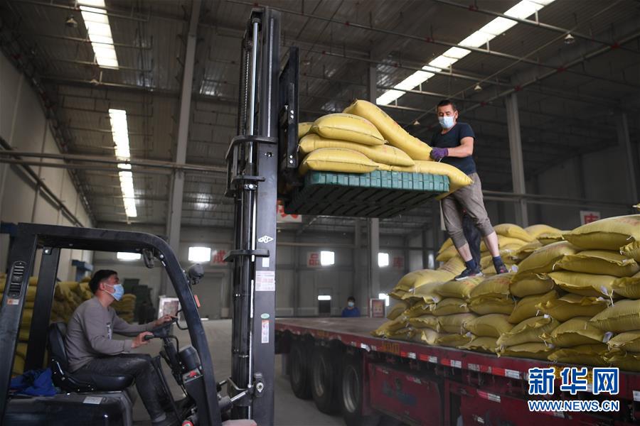 4月26日,中哈霍尔果斯国际边境合作中心中方配套区内的新疆兆丰和生物科技有限公司的员工在装车。3月以来,在做好疫情防控的前提下,新疆霍尔果斯“口岸经济”加快复苏,每天出入其中的商贩和游客逐渐增多。与此同时,位于中哈霍尔果斯国际边境合作中心中方配套区内的各家企业正抓紧时间生产。新华社记者顾煜摄