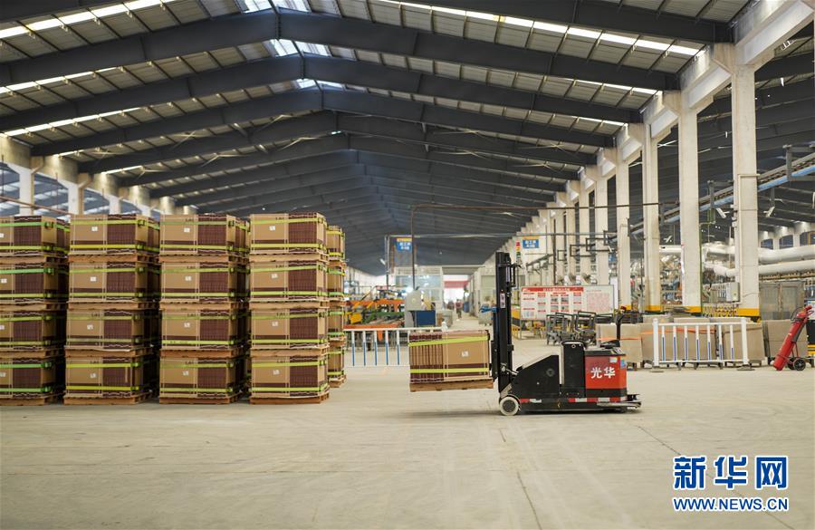 唯美陶瓷荣昌生产基地的自动化生产车间内,一台工业智能机器人在搬运成品瓷砖产品(3月25日摄)。素有“渝西门户”之称的荣昌,已从重庆、成都中间地带的“产业塌陷区”变身为投资热土,成为重庆发展最快的地区之一,也见证着成渝从“背向发展”到“相向发展”的沧桑巨变。新华社记者刘潺摄