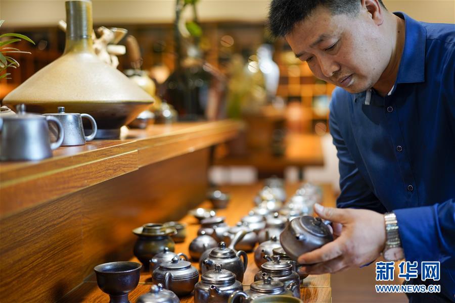 重庆荣昌安陶小镇的传统制陶工坊内,当地的一名陶艺师在检查新出窑的安陶茶具(3月25日摄)。素有“渝西门户”之称的荣昌,已从重庆、成都中间地带的“产业塌陷区”变身为投资热土,成为重庆发展最快的地区之一,也见证着成渝从“背向发展”到“相向发展”的沧桑巨变。新华社记者刘潺摄
