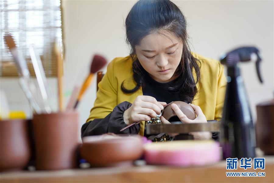 重庆荣昌安陶小镇的一个工坊内,当地制陶艺人在制作安陶产品(3月25日摄)。素有“渝西门户”之称的荣昌,已从重庆、成都中间地带的“产业塌陷区”变身为投资热土,成为重庆发展最快的地区之一,也见证着成渝从“背向发展”到“相向发展”的沧桑巨变。新华社记者刘潺摄