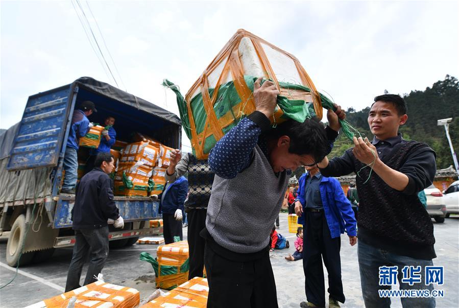 3月25日,在桂黔乌英苗寨,村民在搬运螺苗,准备投放。新华社记者黄孝邦摄