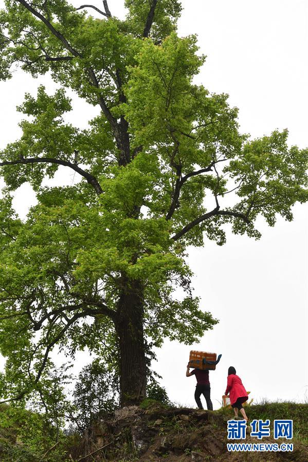 3月25日,在桂黔乌英苗寨,村民将螺苗搬往田间,准备投放。新华社记者黄孝邦摄