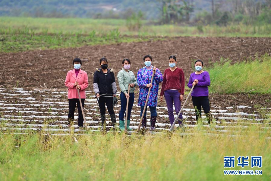 在广西融水苗族自治县永乐镇毛潭村,38岁的欧意凤(右三)和返乡发展产业的妇女们(3月13日摄)。