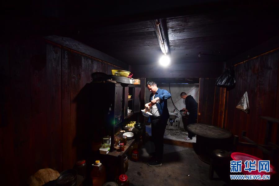 李义成(左)在村民家准备晚餐(4月26日摄)。新华社记者黄孝邦摄