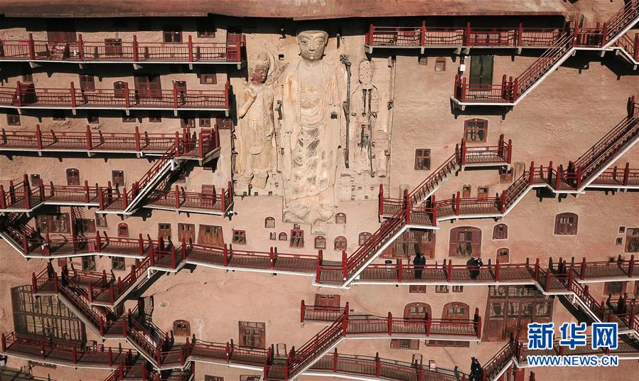 12月26日,游客在麦积山石窟参观游览。新华社记者马宁摄