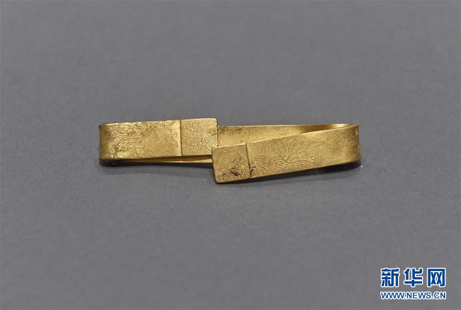 这是发掘出水的花卉纹金手镯(4月15日摄)。新华社记者刘坤摄