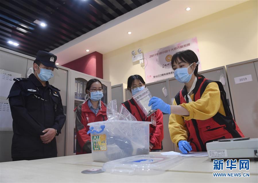 考古人员按照规定流程将当日出水的文物登记入库(4月15日摄)。新华社记者刘坤摄