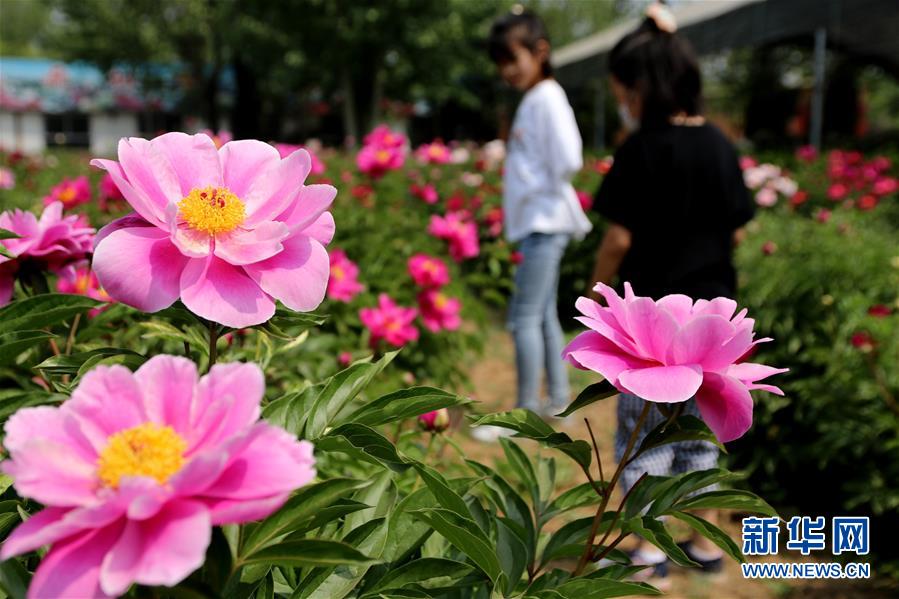 5月2日,游客在河北省邢台市柏乡县汉牡丹园观赏芍药花。“五一”假日期间,人们以多种方式放松心情、享受假日。新华社发(李雪其摄)
