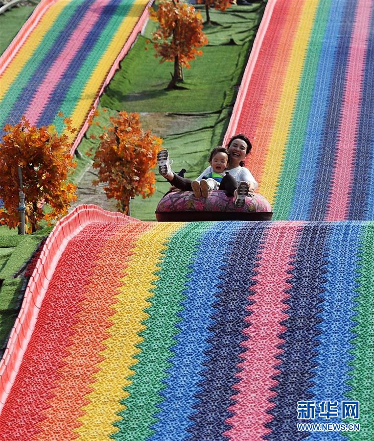 5月2日,在四川省南充市蓬安县正源镇红豆村,游客正在七彩滑道游玩。“五一”假日期间,人们以多种方式放松心情、享受假日。新华社发(刘永红摄)