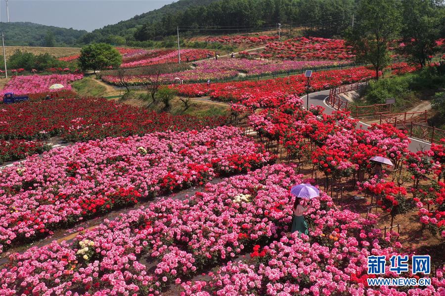 5月2日,游人在湖北省荆门市圣境花谷游玩(无人机照片)。“五一”假日期间,人们以多种方式放松心情、享受假日。新华社发(彭琦摄)