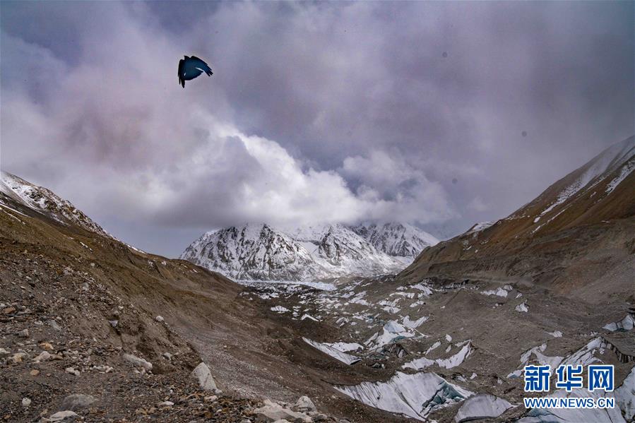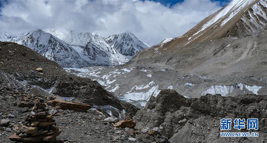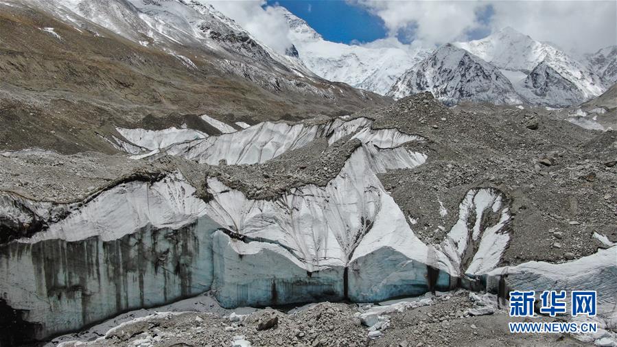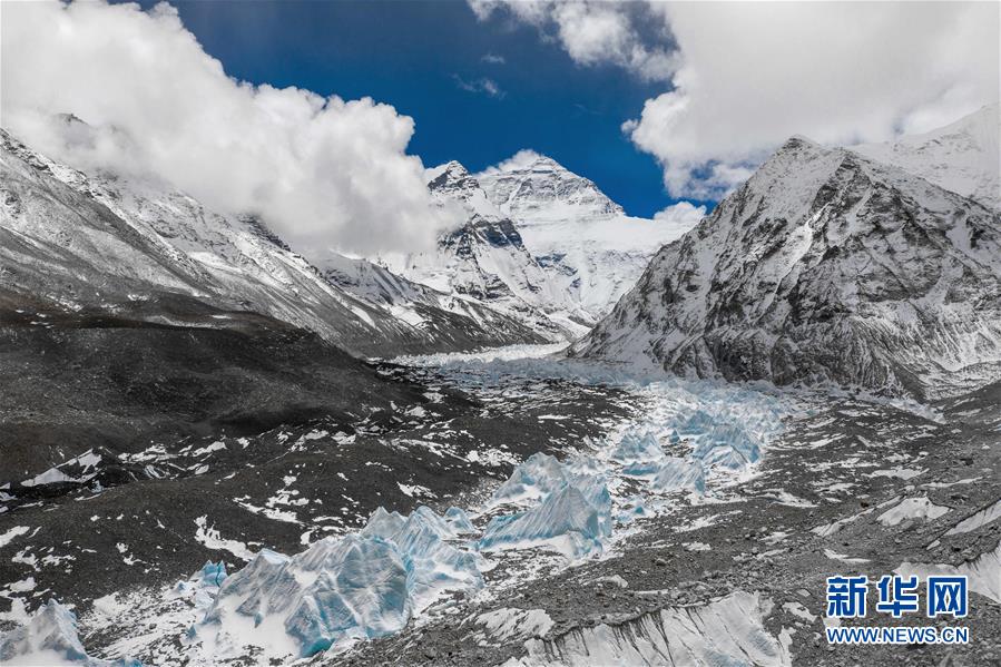 位于珠穆朗玛峰脚下海拔5400米左右的中绒布冰川(4月30日摄)。位于珠穆朗玛峰脚下海拔5400米左右的中绒布冰川,巍峨壮观,冰塔林托起世界最高峰,让人叹为观止。新华社记者孙非摄