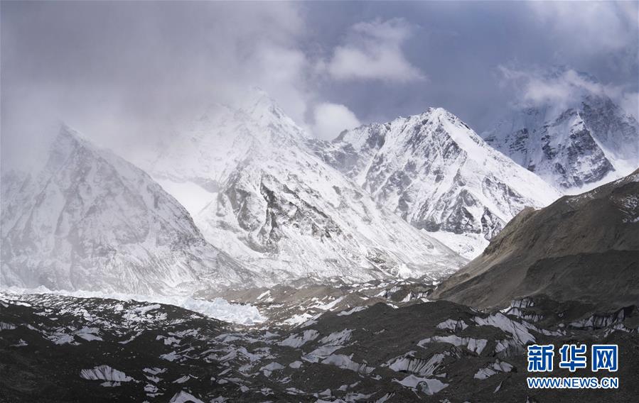 位于珠穆朗玛峰脚下海拔5400米左右的中绒布冰川(4月30日摄)。位于珠穆朗玛峰脚下海拔5400米左右的中绒布冰川,巍峨壮观,冰塔林托起世界最高峰,让人叹为观止。新华社记者普布扎西摄