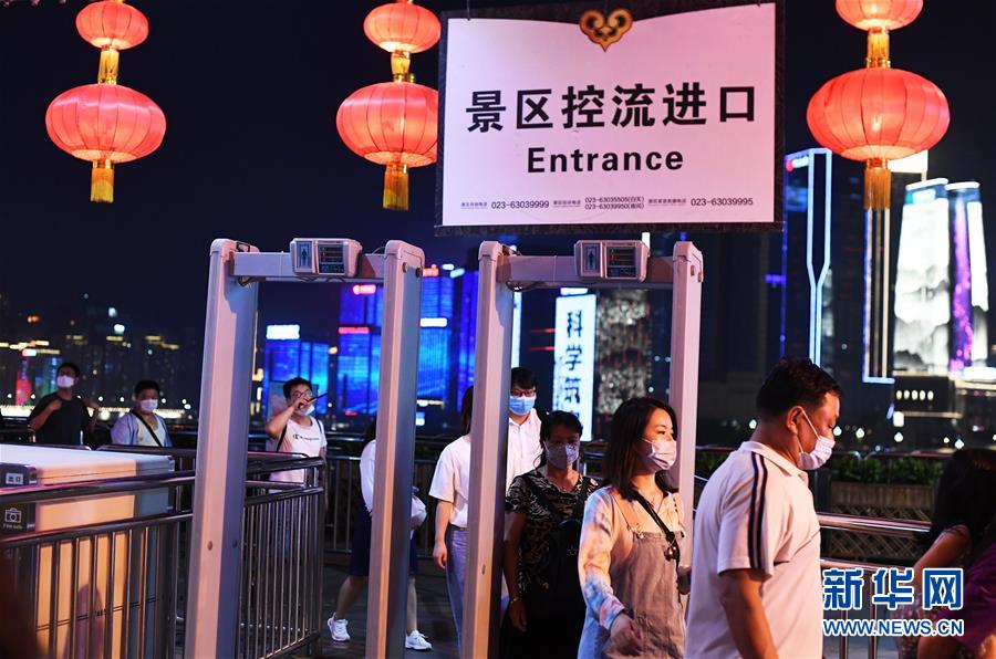 5月3日晚,游客有序进入重庆洪崖洞景区。 “五一”假日期间,位于重庆市渝中区的洪崖洞景区按照“错峰开放、限量开放、预约开放、有序开放”的要求,加强景区开放管理,引导游客安全有序旅游,确保在做好疫情防控的同时,不断优化游客旅游体验,恢复旅游经济。 新华社记者 王全超 摄