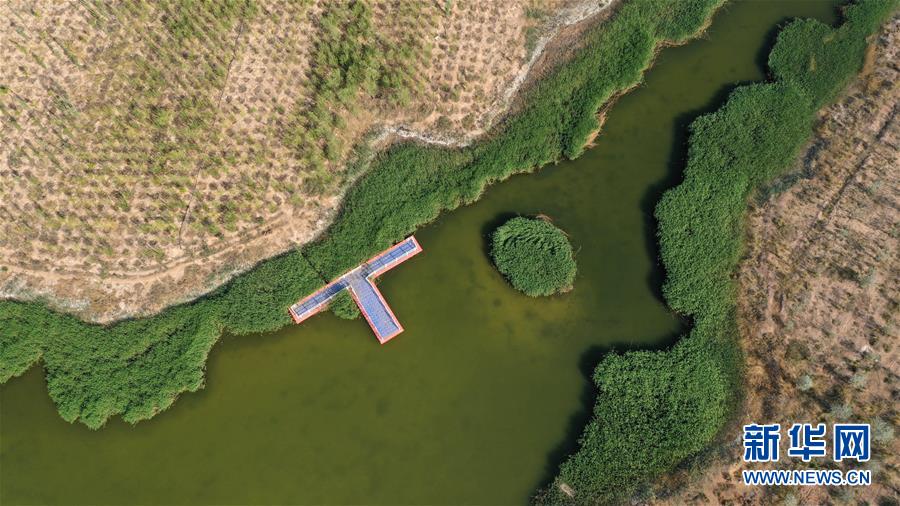 这是5月2日拍摄的宁夏天湖国家湿地公园(无人机照片)。宁夏天湖国家湿地公园位于宁夏中卫市中宁县长山头农场,公园总面积1791公顷,其中湿地面积1649公顷,是宁夏境内原始自然资源保存最完整的湿地之一。湿地公园内动植物资源十分丰富,被誉为黄土旱塬上的“明珠湖”。 新华社记者 王鹏 摄