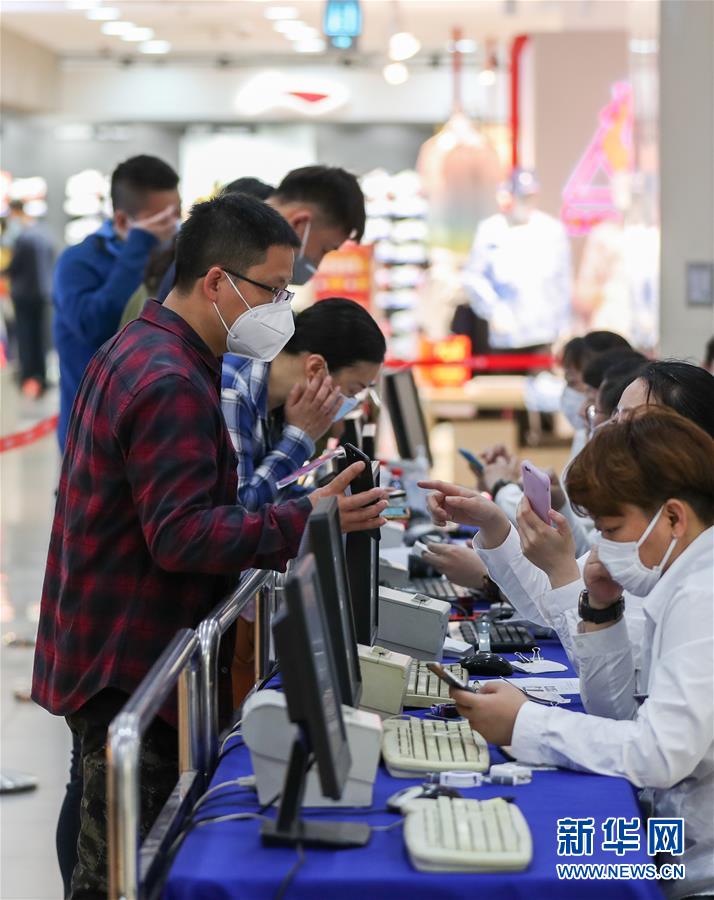 5月5日,消费者在上海一家商场的消费券服务台前排队办理业务。5月4日晚,上海首次启动大规模商业促销活动“五五购物节”,多家在线新经济企业参与,通过线上流量优势反哺线下卖场,实现电商与实体零售融合互动,激活消费潜力、驱动消费复苏。据“上海发布”的消息,截至5日14时12分,“五五购物节”上海地区消费支付总额已超100亿元。新华社记者丁汀摄