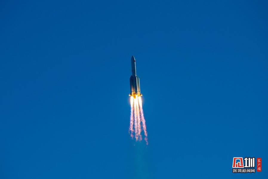 2020年5月5日18时,长征五号B运载火箭在文昌发射场点火升空,这是在第一次程序转弯后正常飞行。