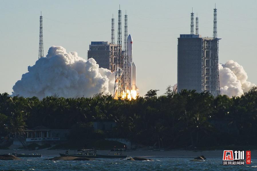 2020年5月5日18时,为中国载人空间站工程研制的长征五号B运载火箭,搭载新一代载人飞船试验船和柔性充气式货物返回舱试验舱,在中国文昌航天发射场点火升空。约488秒后,载荷组合体与火箭成功分离,进入预定轨道,首飞任务取得圆满成功。骆云飞(海南分社)/中新社/人民视觉