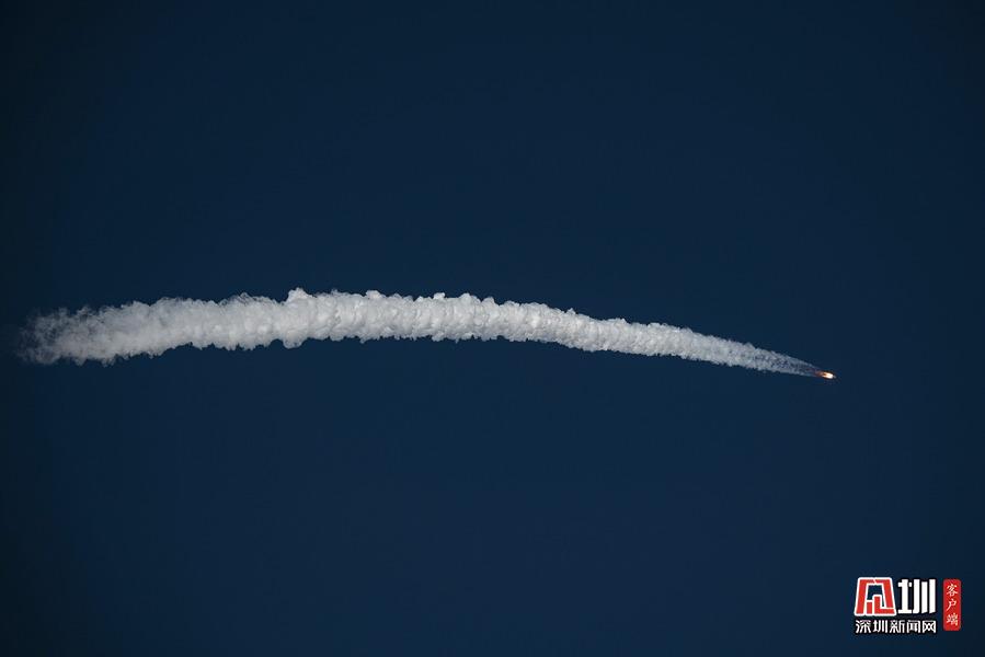 2020年5月5日18时,长征五号B运载火箭在文昌发射场点火升空,这是在第一次程序转弯后正常飞行。
