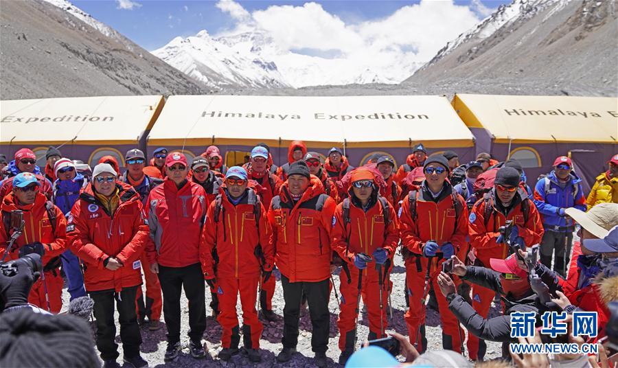 当日,2020珠峰高程测量登山队伍在珠峰大本营举行出发仪式。30多名队员从海拔5200米的大本营向更高海拔出发,开启珠峰冲顶测量。队员们力争抓住近日的天气窗口,择日登顶测量。如果成功,这将是我国专业测绘人员首次登顶珠峰测高。新华社记者普布扎西摄