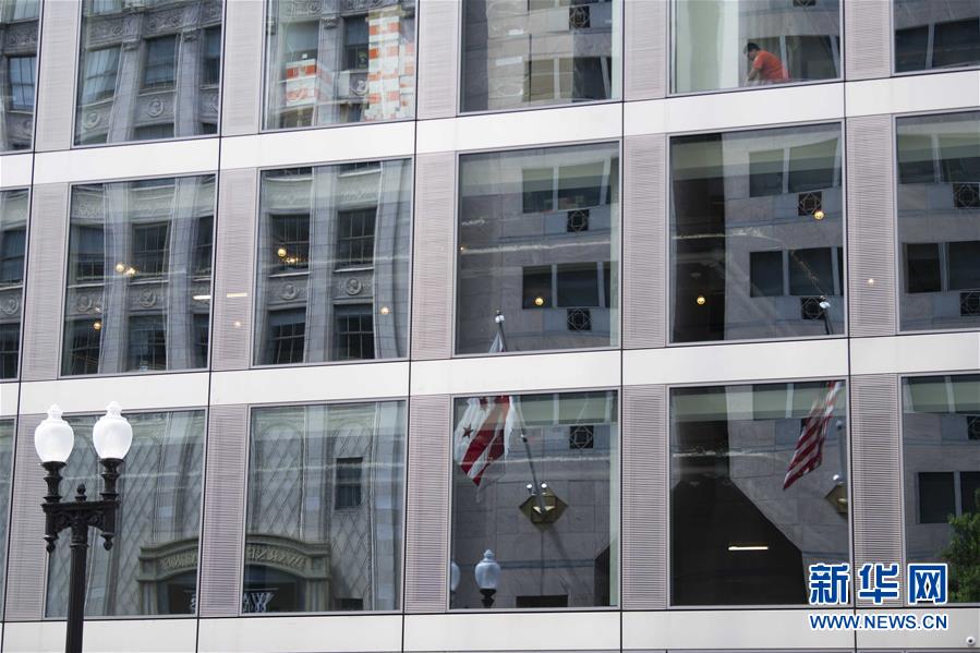 这是5月6日在美国首都华盛顿拍摄的一座办公楼。美国自动数据处理公司(ADP)6日公布的数据显示,由于新冠疫情冲击美国经济和企业,4月美国私营部门大幅削减约2023.6万个就业岗位。新华社记者刘杰摄