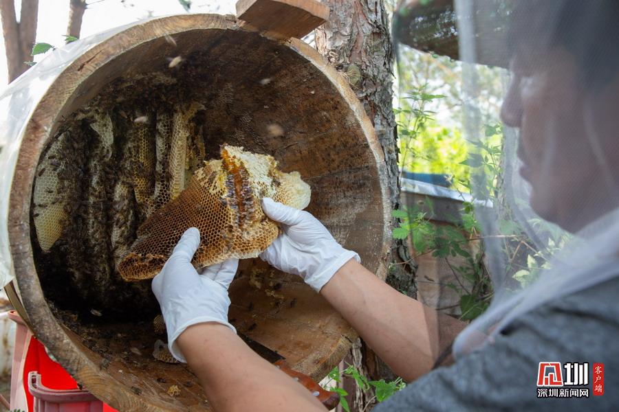 2020年5月3日,湖北省襄阳市,在南漳三道河水库小岛上,小岛养蜂人赵德海正在采割蜂蜜。