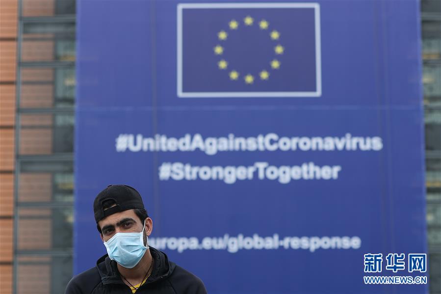 欧盟委员会5月6日预测,受新冠疫情影响,2020年欧洲经济将出现“历史性衰退”,欧盟经济将萎缩7.5%,欧元区经济将萎缩7.75%。这是5月4日在比利时布鲁塞尔的欧盟委员会总部大厦前拍摄的一名戴口罩的男子。新华社记者郑焕松摄