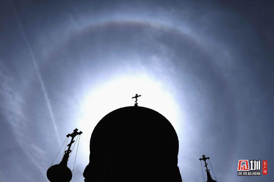 2020年5月8日,哈尔滨主城区上空美轮美奂的巨型超大日晕。