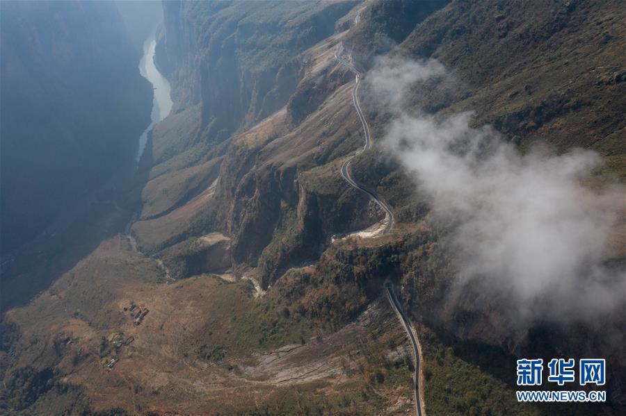 这是布拖县阿布洛哈村通村公路(2019年12月29日摄,无人机照片)。新华社记者江宏景摄