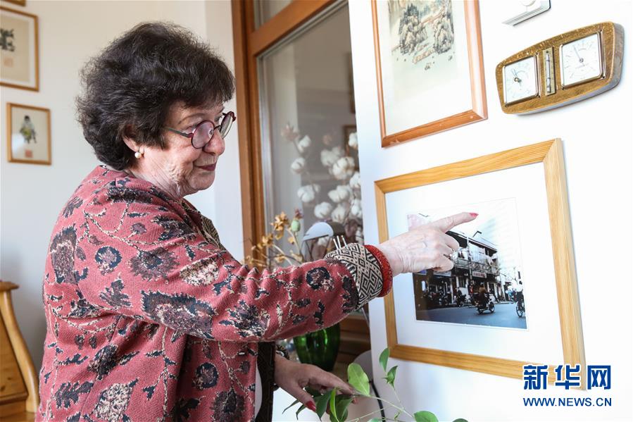 4月23日,索尼娅·米尔伯格在位于德国柏林东郊一个小镇的家中介绍她在上海旧居的照片。新华社记者单宇琦摄