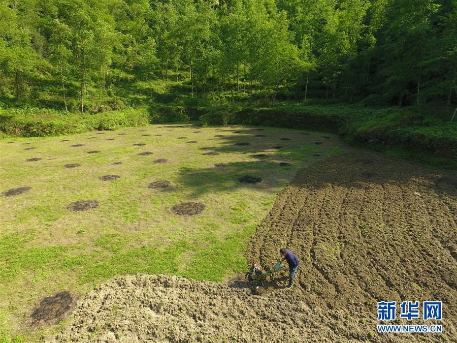 施六金在田间翻耕(4月24日摄)。1973年出生于十八洞村的施六金,由于父亲患病很早就放弃学业和母亲扛起了家庭的重担。为了生活,他还曾远去东南亚打工。2015年,看到家乡的变化,施六金回到村里开起了农家乐,年度家庭人均纯收入也从2014年的1715元增长到了2019年的35696元。2018年,施六金与心爱的人组建了家庭。今年初,施六金与爱人迎来了一个大胖小子。“做人做事要懂得回报和感恩。”施六金给刚出生的儿子取名施泽恩。新华社记者薛宇舸摄