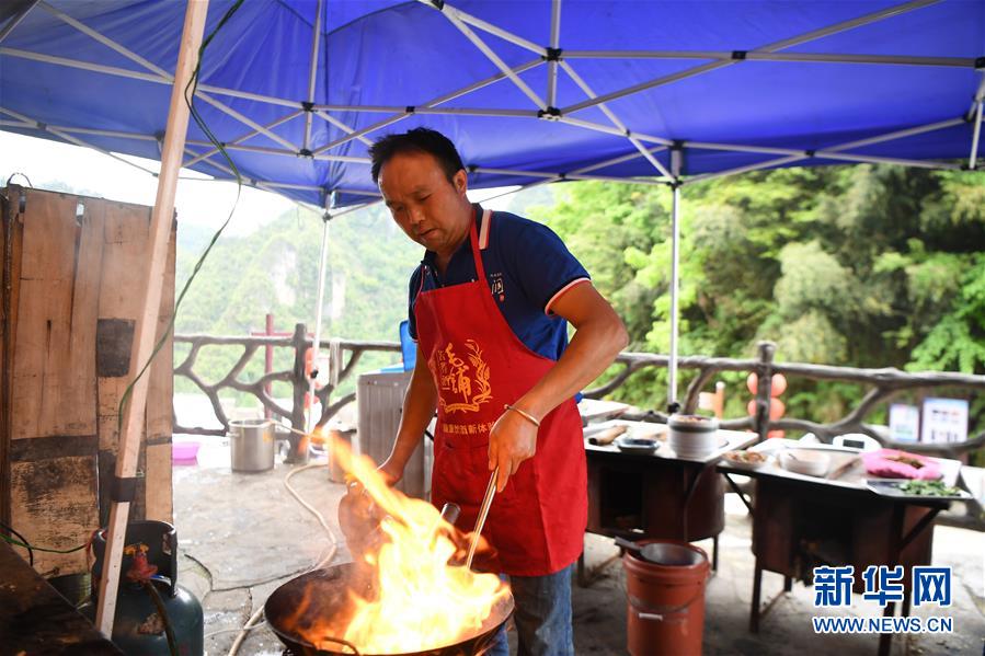 施六金在自家开的农家乐为客人准备午餐(4月25日摄)。1973年出生于十八洞村的施六金,由于父亲患病很早就放弃学业和母亲扛起了家庭的重担。为了生活,他还曾远去东南亚打工。2015年,看到家乡的变化,施六金回到村里开起了农家乐,年度家庭人均纯收入也从2014年的1715元增长到了2019年的35696元。2018年,施六金与心爱的人组建了家庭。今年初,施六金与爱人迎来了一个大胖小子。“做人做事要懂得回报和感恩。”施六金给刚出生的儿子取名施泽恩。新华社记者薛宇舸摄