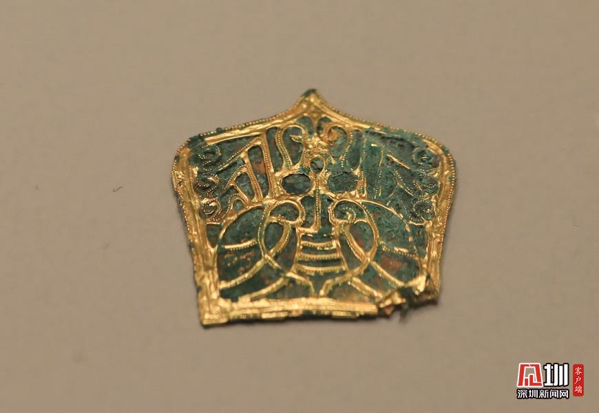 2020年5月10日报道,近十年来最大规模三国文物展“三国志——文化主题特展”,正在中华世纪坛展出。图为西晋,蝉纹金珰。