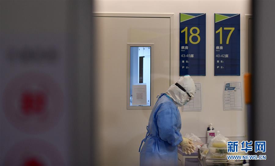 5月11日,在空港医院隔离病房,身处“红区”的护士准备给处在医学观察的人员送饭。新华社记者李然摄