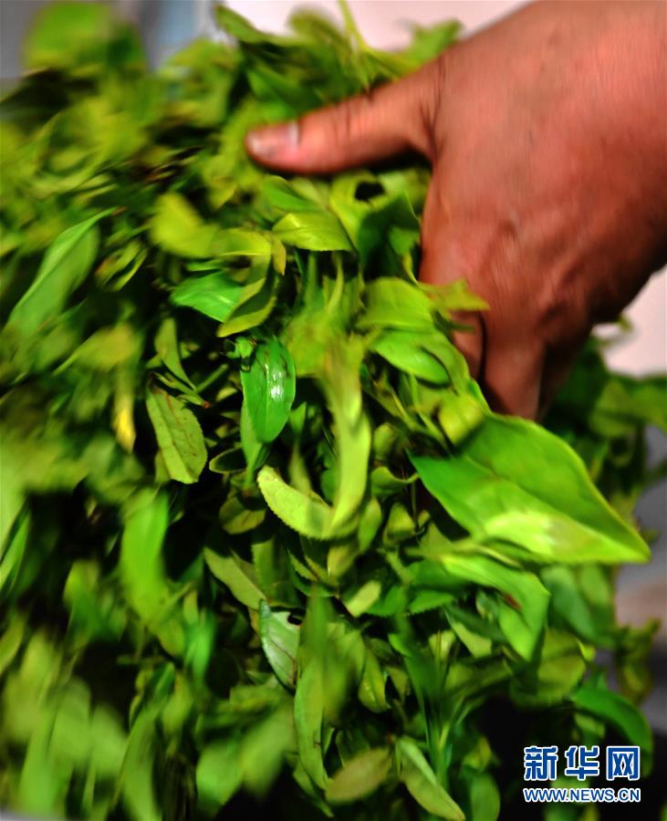 游玉琼跟方舟一起对武夷岩茶中的白鸡冠品种按白茶做法进行创新研发(5月10日摄)。新华社记者魏培全摄