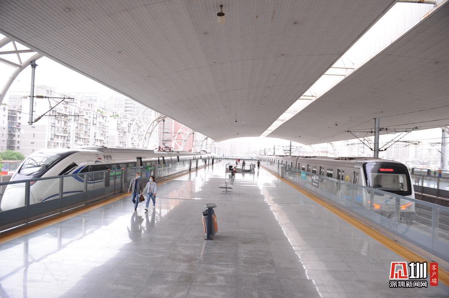 2020年5月11日,四川省成都市,动车和地铁停靠在犀浦火车站。该站在全国首创铁路与地铁同台换乘记录,提升了市域铁路衔接公共交通的效率。