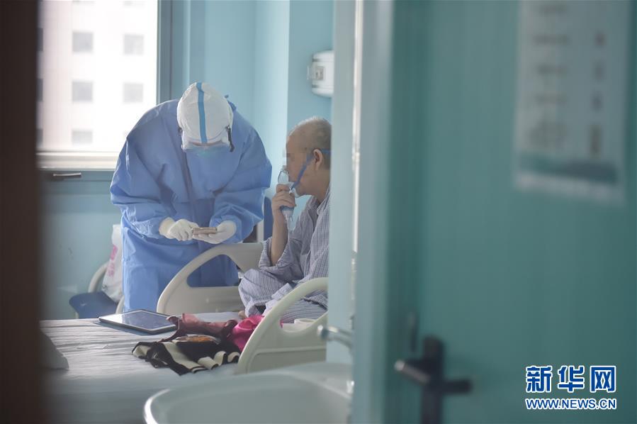 5月11日,在北京地坛医院感染二科病房内,护士高齐为病人做检查。北京地坛医院是北京市收治新冠肺炎患者的定点医院之一,医院的医护人员一直奋战在抗击疫情的一线。在国际护士节前夕,记者前往北京地坛医院,记录下抗疫一线护士的日常工作状态。新华社记者彭子洋摄