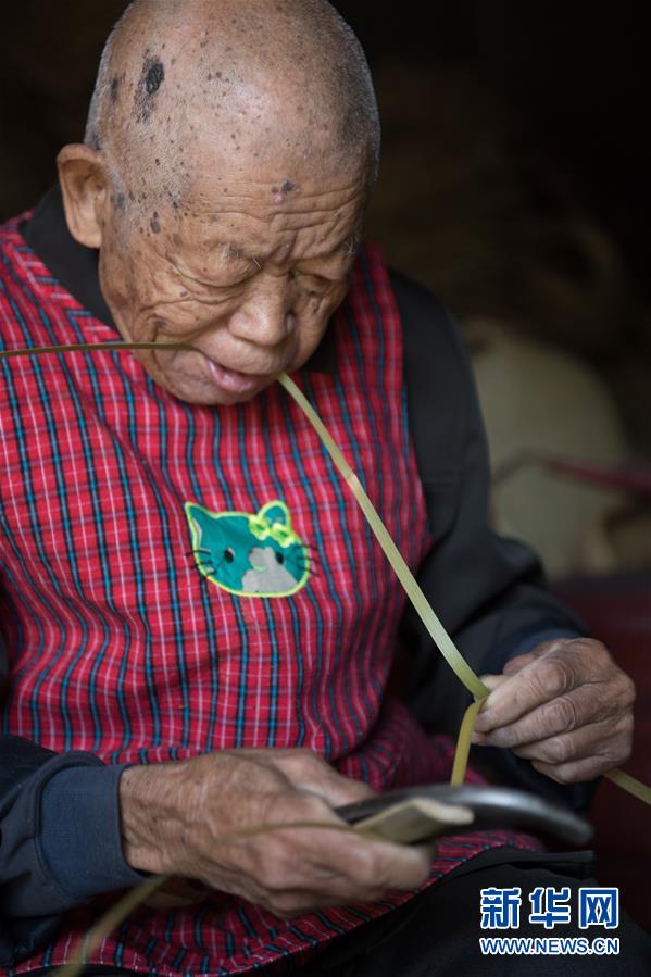 5月12日,浙江诸暨龙溪村的百岁老人蔡渭东在家中处理竹篾。浙江诸暨东和乡龙溪村有一位102岁的老人蔡渭东,他从12岁开始拜师学艺,做了90年的篾匠,如今依然耳聪目明,每天坚持编织篾器。蔡渭东老人说他舍不得丢掉这份老手艺,也希望年轻人能传承下去。新华社记者翁忻旸摄