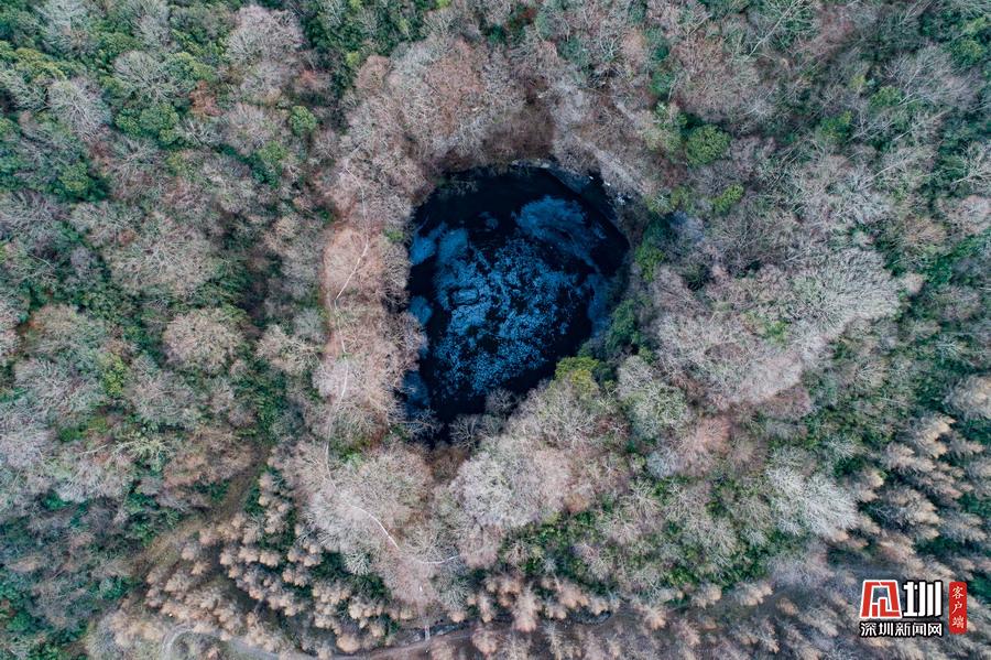 图为2019年3月11日,陕西汉中镇巴县三元镇天坑,坑口形态呈近圆形,最大口径110米,最大坑深150米。