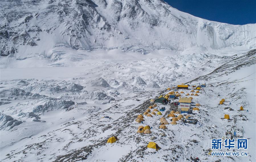 这是海拔6500米的珠峰前进营地(5月10日无人机照片)。