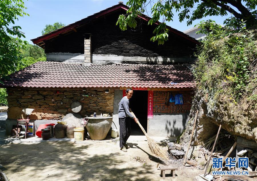 5月12日,在安康市汉滨区石梯镇烟岭村,村民李均田在自家改造后的房屋前扫地。新华社记者邵瑞摄