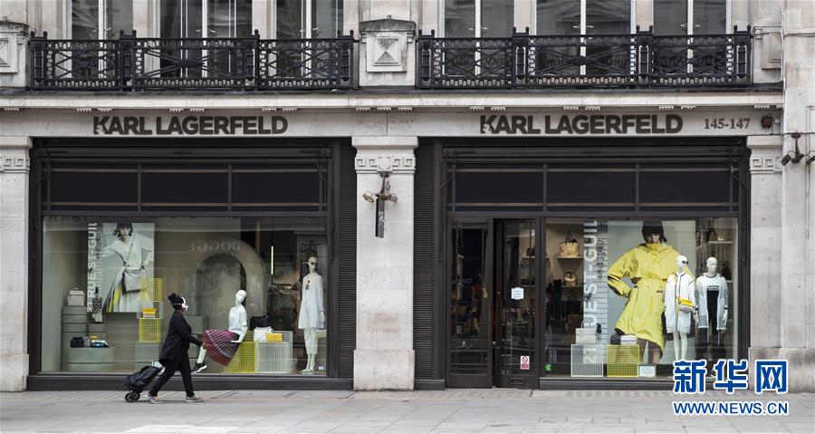 5月12日,一名女子从英国伦敦摄政街关闭的店铺前经过。
